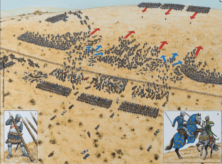 - 1500’ü okçu ve arbaletçi 6000 piyade ile kalanı şövalye olmak üzere 10 bin Fransız ve Burgonyalı