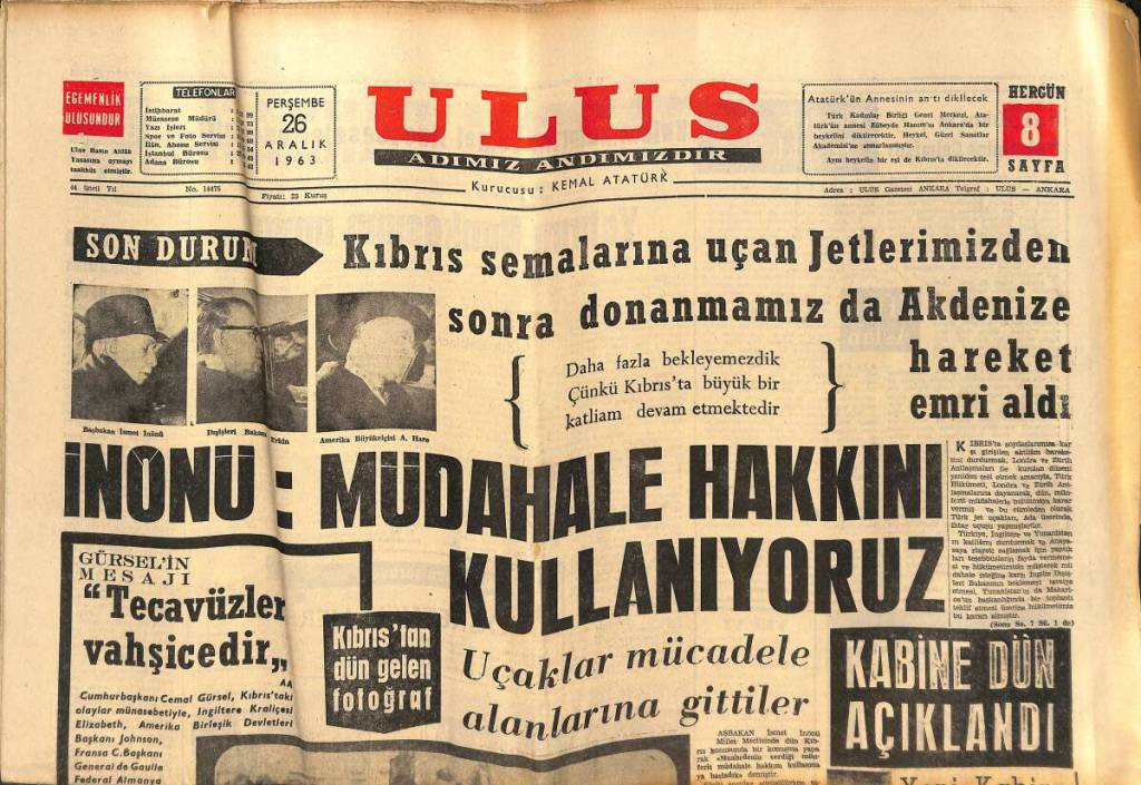 Türkiye’nin Kıbrıs meselesine müdahale etmemesi gerektiğini de iddia eden Makarios, Türkiye’nin kuvvet kullanarak müdahalesinin saldırganlık sayılacağını sözlerine eklemiştir. Kıbrıs Cumhurbaşkanı’na göre, adadaki çoğunluğun arzularına uymayan bir anayasanın değiştirilmesi için Türklerin onayını almaya lüzum yoktur. Bu açıklamaların yapıldığı aynı gün gazetelerde, üç Türk’ün öldürüldüğü, Atatürk Heykeli etrafında toplanan Türklere bomba atıldığı ve olaylarda yirmiden fazla kişinin yaralandığı, yaralılara müdahaleye giden ambulanslara da ateş açıldığı bildirilmiştir.